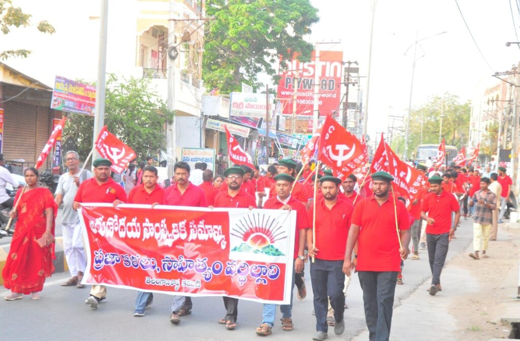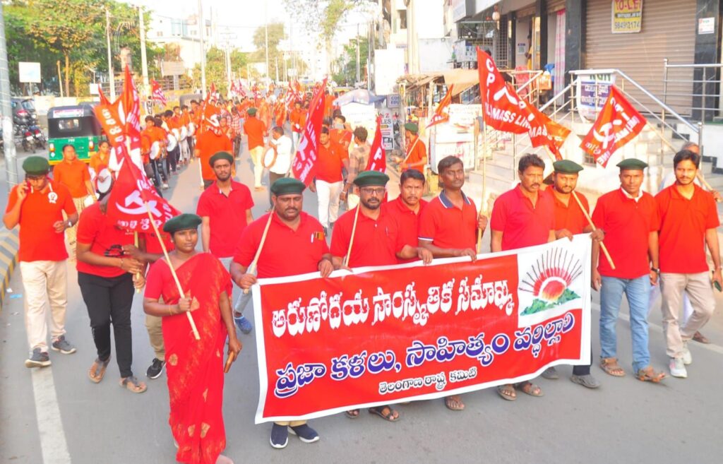 సిపిఐ(ఎంఎల్) మాస్ లైన్ ప్రజా పంధా యూనిటీ మహాసభల జయప్రదానికై అరుణోదయ కళాకారులు విద్యార్థి యువజన సంఘాల వాలంటీర్స్ ఖమ్మం నగరంలో రెడ్ కవాతు నిర్వహించారు