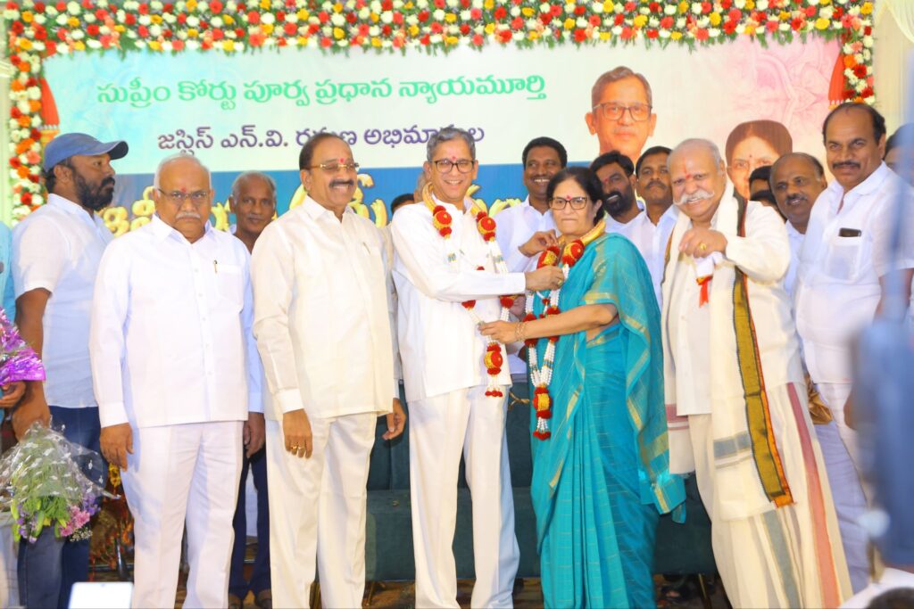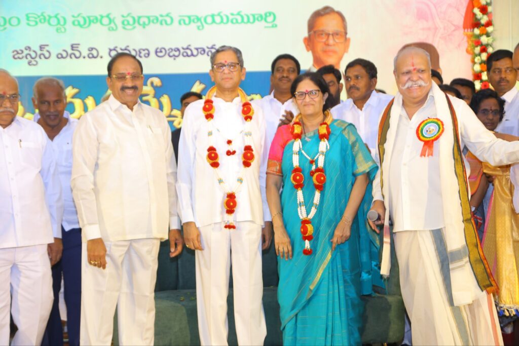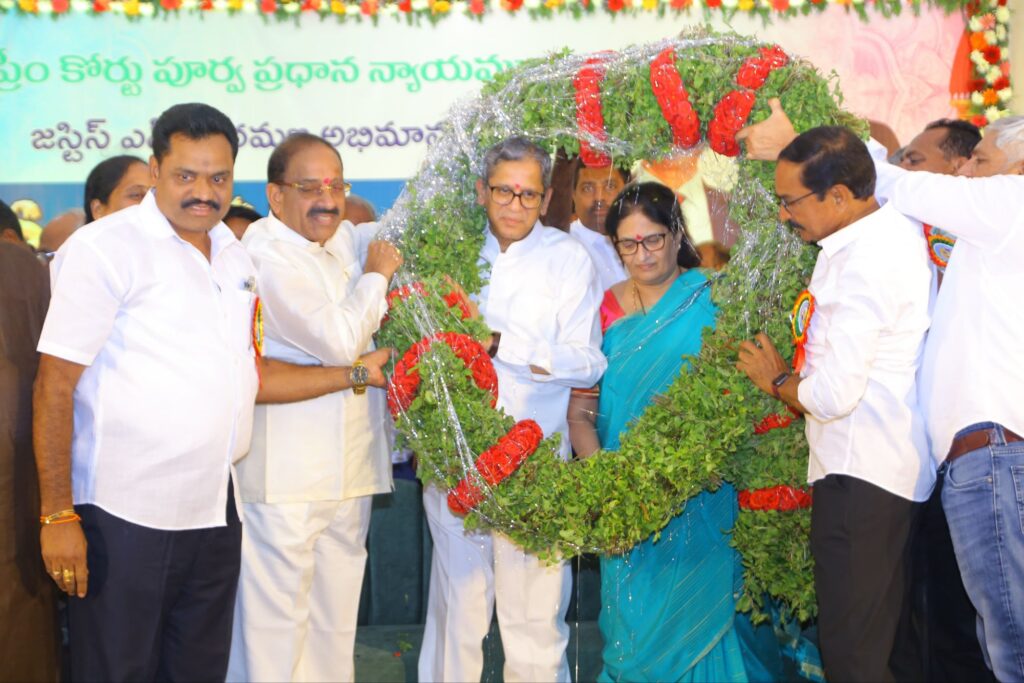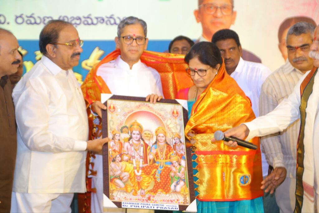 ఖమ్మం విచ్చేసిన భారత ఉన్నత న్యాయస్థానం మాజీ ప్రధాన న్యాయమూర్తి శ్రీ నూతలపాటి వెంకటరమణ ను గజమాల, దుశ్శాలువతో సత్కరించి బోకే అందజేసి అభినందించారు. ఈ సందర్భంగా మంత్రి తుమ్మల నాగేశ్వరరావు మాట్లాడుతూ సుప్రీంకోర్టు ప్రధాన న్యాయమూర్తిగా సేవలందించిన జస్టిస్ రమణ సేవలను కొని యాడారు. తెలుగు ప్రజలు గర్వించేలా విధులను నిర్వర్తించి ఎంతో కీర్తిని గడించిన జస్టిస్ రమణ ను మంత్రి అభినందించారు.