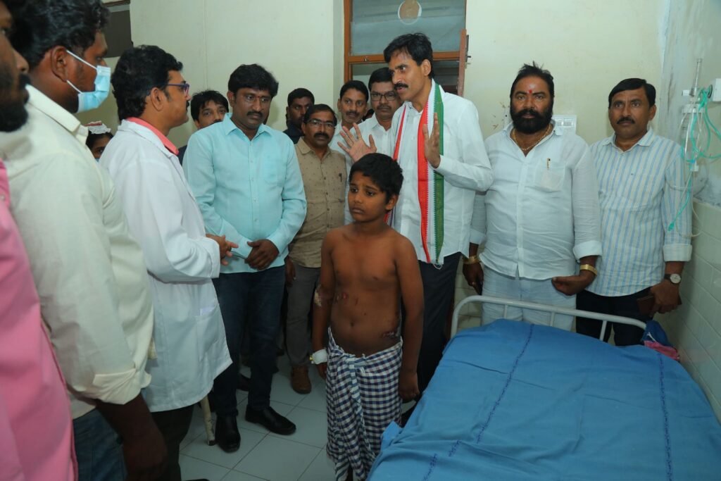 ఖమ్మం : ఇటీవల ప్రమాదవశాత్తు వేడి సాంబారు గిన్నెలో పడిపోయి తీవ్రంగా గాయపడిన పెరిక సింగారం గ్రామానికి చెందిన అడపాల మనోహర్ ను కాంగ్రెస్ జిల్లా నాయకులు పొoగులేటి ప్రసాద్ రెడ్డి మంగళవారం పరామర్శించారు. ఖమ్మంలోని ప్రభుత్వ ప్రధానాస్పత్రిలో చికిత్స పొందుతున్న ఈ బాలుడితో మాట్లాడి ధైర్యం చెప్పారు. మెరుగైన చికిత్స అందించాలని వైద్యులను కోరారు. అనంతం ఆస్పత్రి మెడికల్ సూపరింటెoడెంట్ ఎల్.కిరణ్ కుమార్ ను కలిసి..వివరాలు తెలుసుకున్నారు. ఆస్పత్రి లోపల అంతా పరిశుభ్రంగా వుంచారని అభినందించారు. ఇలాంటి శ్రద్ధ నే కొనసాగించాలని కోరారు. ఈ కార్యక్రమంలో మాజీ ఎంపీపీ జూకూరి గోపాలరావు, నాయకులు దుంపల రవి, మంకెన వాసు తదితరులు పాల్గొన్నారు.