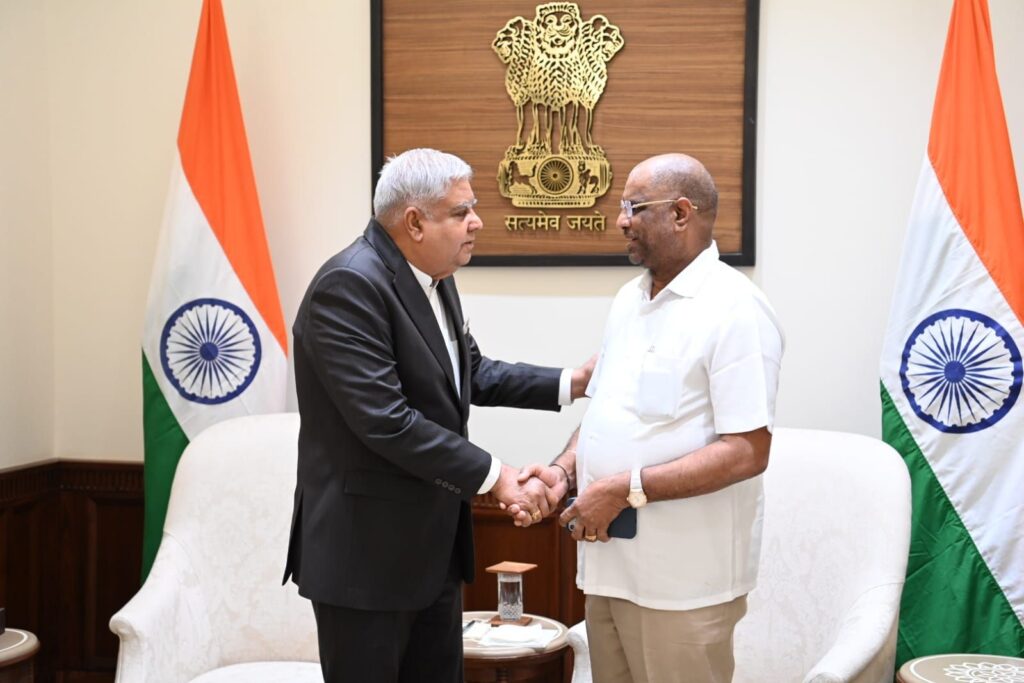రాజ్యసభకు తిరిగి ఏకగ్రీవంగా ఎన్నికైన వద్దిరాజు రవిచంద్రకు ఉప రాష్ట్రపతి, రాజ్యసభ ఛైర్మన్ జగదీప్ ధనఖర్ హృదయపూర్వక శుభాకాంక్షలు తెలిపారు.శాసనసభ్యులు మీ సేవల పట్ల మరింత నమ్మకం కలిగి, విశ్వాసం వ్యక్తం చేస్తూ రాజ్యసభకు తిరిగి ఎన్నుకున్నారని తన సందేశంలో ఛైర్మన్ పేర్కొన్నారు.రాజ్యసభకు తిరిగి ఎన్నికైన తర్వాత ఎంపీ రవిచంద్ర ఛైర్మన్ ధనఖర్ ను బుధవారం ఢిల్లీలో మర్యాదపూర్వకంగా కలిశారు.ఈ సందర్భంగా రవిచంద్రతో ఛైర్మన్ మాట్లాడుతూ “ఈ ప్రజాస్వామ్య దేవాలయం(పార్లమెంట్)లో అర్థవంతమైన,ఆరోగ్యకరమైన చర్చలు జరిపేందుకు నీ అనుభవం చాలా అవసరం”అని పేర్కొన్నారు.”నీ సమయస్పూర్తి,విషయ పరిజ్ఞానం,సమర్థత, వ్యక్తీకరణ పార్లమెంట్ ఔన్నత్యాన్ని మరింత పెంచగలవు”అంటూ నీతో కలిసి పని చేయడానికి తాను ఎదురుచూస్తున్నానని వద్దిరాజుతో ఛైర్మన్ ధనఖర్ అన్నారు.ఈ సందర్భంగా ఎంపీ రవిచంద్ర తనకు శుభాకాంక్షలు తెలిపిన ఛైర్మన్ జగదీప్ ధనఖర్ కు హృదయపూర్వక కృతజ్ఞతలు తెలిపారు, ధన్యవాదాలు చెప్పారు.