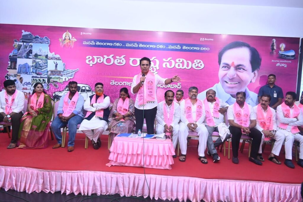 భారత రాష్ట్ర సమితి (బీఆర్ఎస్)హైదరాబాద్ జూబ్లీహిల్స్ అసెంబ్లీ నియోజకవర్గం రహమత్ నగర్ డివిజన్ కార్యకర్తల సమావేశం తెలంగాణ భవన్ లో బుధవారం జరిగింది.ఈ సమావేశానికి బీఆర్ఎస్ వర్కింగ్ ప్రెసిడెంట్ కే.టీ.రామారావు ముఖ్య అతిథిగా హాజరై కార్యకర్తలను ఉద్దేశించి ప్రసంగించారు.ఈ సమావేశానికి బీఆర్ఎస్ పార్లమెంటరీ పార్టీ డిప్యూటీ లీడర్, రాజ్యసభ సభ్యులు వద్దిరాజు రవిచంద్ర, మాజీ మంత్రి గంగుల కమలాకర్, ఎమ్మెల్సీలు తక్కళ్లపల్లి రవీందర్ రావు,ఏల్.రమణ,ప్రభుత్వ మాజీ చీఫ్ విప్ దాస్యం వినయ్ భాస్కర్, మాజీ ఎమ్మెల్యేలు కోరుకంటి చందర్,పీ.విష్ణువర్థన్ రెడ్డి,దివంగత శాసనసభ్యులు మాగంటి గోపీనాథ్ సతీమణి సునీత తదితర ప్రముఖులు హాజరయ్యారు.ఈ సందర్భంగా స్వర్గీయ గోపీనాథ్ మృతి పట్ల తీవ్ర సంతాపం వ్యక్తం చేస్తూ సభికులంతా రెండు నిమిషాలు మౌనం పాటించారు.