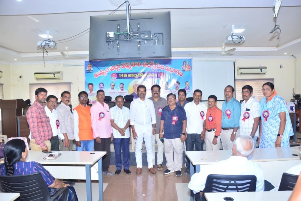 పద్మశాలి ఉద్యోగుల ఆత్మీయ సమావేశం 14వ వార్షికోత్సవం సందర్భంగా డిఆర్పిసి భవనం నందు ఘనంగా నిర్వహించారు . ఈ సందర్భంగా పద్మశాలి ఉద్యోగుల సంఘం జిల్లా అధ్యక్షులు రచ్చ శ్రీనివాస్ మాట్లాడుతూ గత 14 సంవత్సరాలుగా ప్రతి సంవత్సరం లక్ష రూపాయల స్కాలర్షిప్లను పేద పద్మశాలి పిల్లలకు పంపిణీ చేస్తున్నామని అన్నారు . అలాగే ప్రతి సంవత్సరం పదవీ విరమణ మరియు పదోన్నతి పొందిన ఉద్యోగస్తులను సతి సమేతంగా సన్మానించుకోవడం జరుగుతుందన్నారు . ఈ సంవత్సరం వికలాంగులకు 30 వేల స్కాలర్షిప్ ను పంపిణీ చేశామని తెలియజేశారు . రాబోవు కాలంలో ఈ స్కాలర్షిప్ లను రెండు లక్షల వరకు పెంచుతామని హామీ ఇచ్చారు . సంఘం ప్రధాన కార్యదర్శి మొరం మధు కుమార్ కార్యక్రమాన్ని అన్ని రంగాల్లో విజయం సాధించేలా కృషి చేశారు . ఈ కార్యక్రమానికి ముఖ్య అతిథులుగా తెలంగాణ రాష్ట్ర పద్మశాలి సంఘం అధ్యక్షులు కమర్థపు మురళి , రాష్ట్ర జాయింట్ సెక్రెటరీ జిల్లా లక్ష్మీనారాయణ పాల్గొన్నారు . ఈ సందర్భంగా వారు మాట్లాడుతూ పద్మశాలీలు అనేక రంగాల్లో ముందంజలో ఉన్నారు కానీ రాజకీయంగా లేరని కావున పద్మశాలీలు రాజకీయంగా ఎదగాలని పేర్కొన్నారు . అనంతరం సుమారు 1లక్ష 30 వేల స్కాలర్షిప్పులను పేద పద్మశాలి విద్యార్థులకు మరియు వికలాంగులకు పంపిణీ చేశారు . ఈ కార్యక్రమంలో కార్యవర్గ సభ్యులు అంచ నాగరాజు , మోతుకూరు జానకి రాములు , ఉదారి గోపాల్ రావు , బండారు వెంకన్న , అప్పని భాస్కరరావు , నాగుల కృష్ణమూర్తి , రచ్చ రామారావు , పిల్లలమర్రి మురళీకృష్ణ తదితరులు పాల్గొన్నారు .