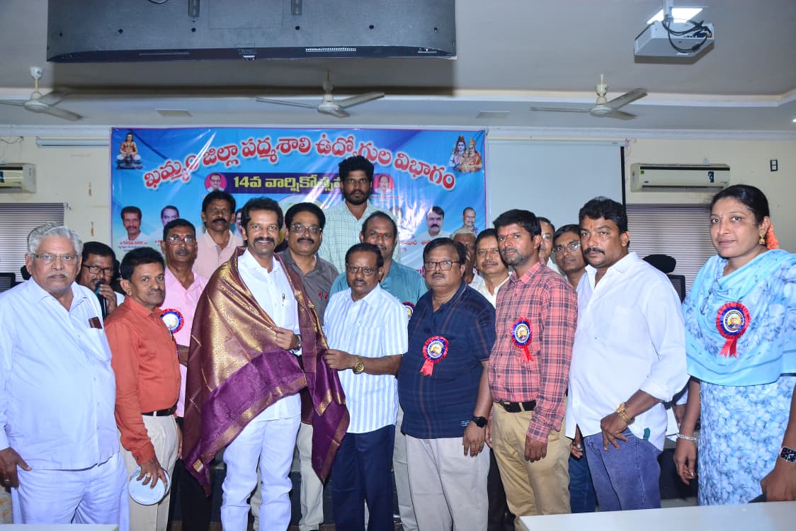 పద్మశాలి ఉద్యోగుల ఆత్మీయ సమావేశం 14వ వార్షికోత్సవం సందర్భంగా డిఆర్పిసి భవనం నందు ఘనంగా నిర్వహించారు . ఈ సందర్భంగా పద్మశాలి ఉద్యోగుల సంఘం జిల్లా అధ్యక్షులు రచ్చ శ్రీనివాస్ మాట్లాడుతూ గత 14 సంవత్సరాలుగా ప్రతి సంవత్సరం లక్ష రూపాయల స్కాలర్షిప్లను పేద పద్మశాలి పిల్లలకు పంపిణీ చేస్తున్నామని అన్నారు . అలాగే ప్రతి సంవత్సరం పదవీ విరమణ మరియు పదోన్నతి పొందిన ఉద్యోగస్తులను సతి సమేతంగా సన్మానించుకోవడం జరుగుతుందన్నారు . ఈ సంవత్సరం వికలాంగులకు 30 వేల స్కాలర్షిప్ ను పంపిణీ చేశామని తెలియజేశారు . రాబోవు కాలంలో ఈ స్కాలర్షిప్ లను రెండు లక్షల వరకు పెంచుతామని హామీ ఇచ్చారు . సంఘం ప్రధాన కార్యదర్శి మొరం మధు కుమార్ కార్యక్రమాన్ని అన్ని రంగాల్లో విజయం సాధించేలా కృషి చేశారు . ఈ కార్యక్రమానికి ముఖ్య అతిథులుగా తెలంగాణ రాష్ట్ర పద్మశాలి సంఘం అధ్యక్షులు కమర్థపు మురళి , రాష్ట్ర జాయింట్ సెక్రెటరీ జిల్లా లక్ష్మీనారాయణ పాల్గొన్నారు . ఈ సందర్భంగా వారు మాట్లాడుతూ పద్మశాలీలు అనేక రంగాల్లో ముందంజలో ఉన్నారు కానీ రాజకీయంగా లేరని కావున పద్మశాలీలు రాజకీయంగా ఎదగాలని పేర్కొన్నారు . అనంతరం సుమారు 1లక్ష 30 వేల స్కాలర్షిప్పులను పేద పద్మశాలి విద్యార్థులకు మరియు వికలాంగులకు పంపిణీ చేశారు . ఈ కార్యక్రమంలో కార్యవర్గ సభ్యులు అంచ నాగరాజు , మోతుకూరు జానకి రాములు , ఉదారి గోపాల్ రావు , బండారు వెంకన్న , అప్పని భాస్కరరావు , నాగుల కృష్ణమూర్తి , రచ్చ రామారావు , పిల్లలమర్రి మురళీకృష్ణ తదితరులు పాల్గొన్నారు .